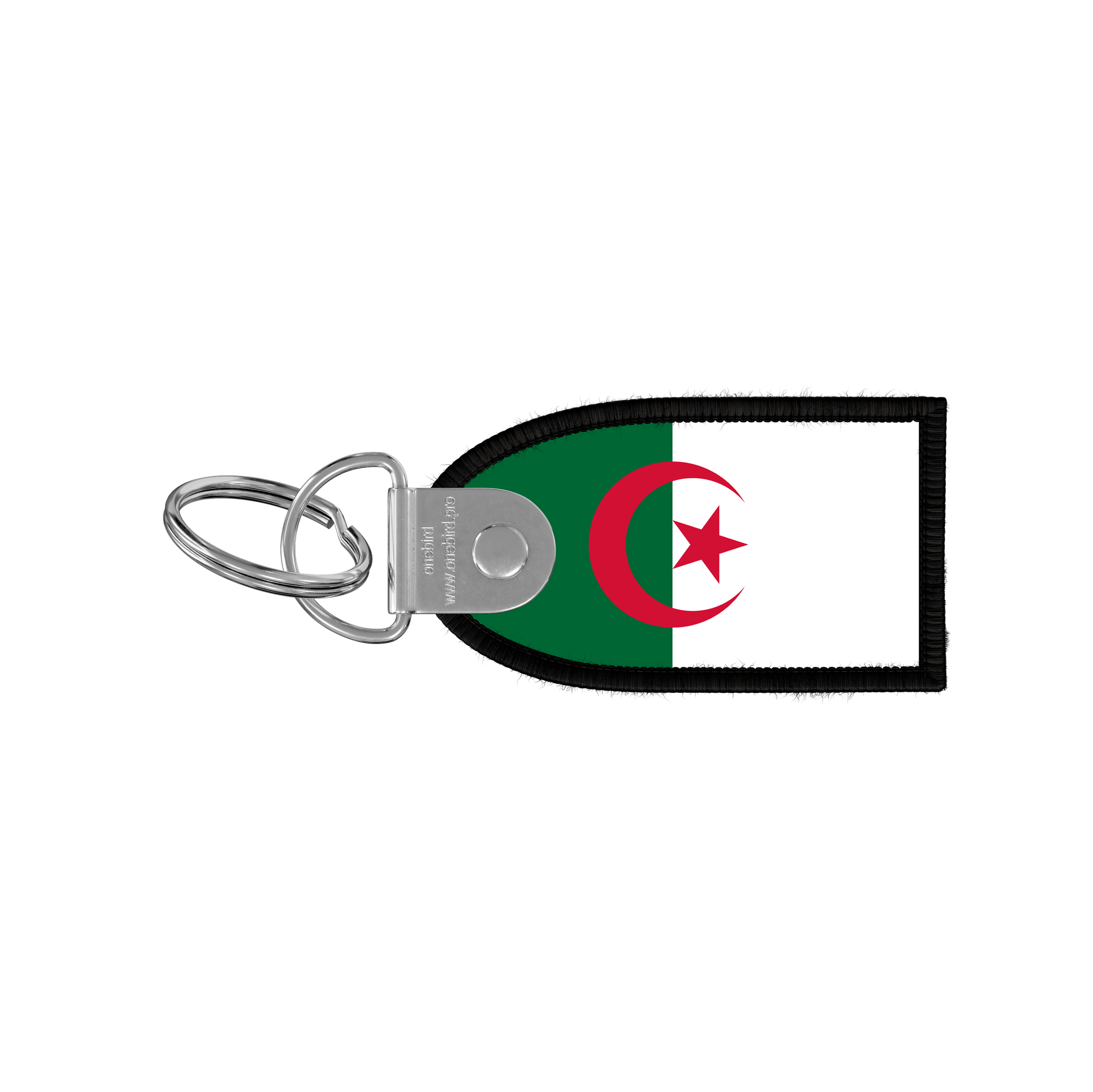 Key ring in fabric bordered in black and woven on both sides with the flag of Algeria