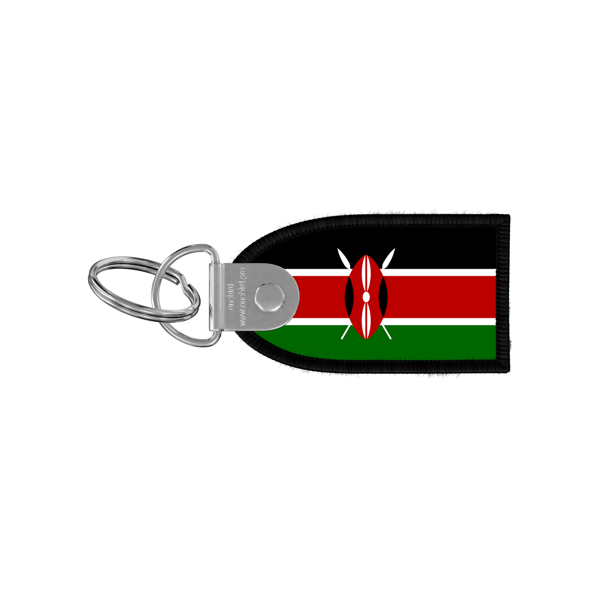 Key ring in fabric bordered in black and woven on both sides with the flag of Kenya